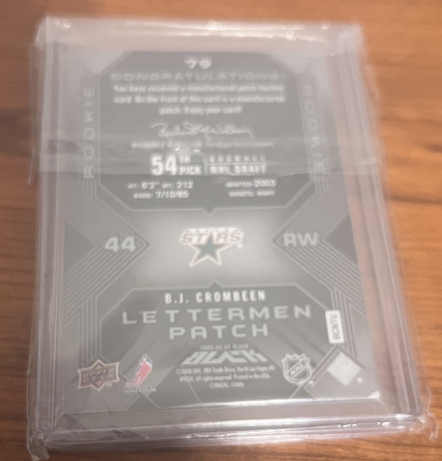 2008-09 Upper Deck UD Black Rookie Lettermen /399 BJ Crombeen #79 Dallas Stars Letter "R" **LOPSIDED TRADE OFFER PLEASE READ**