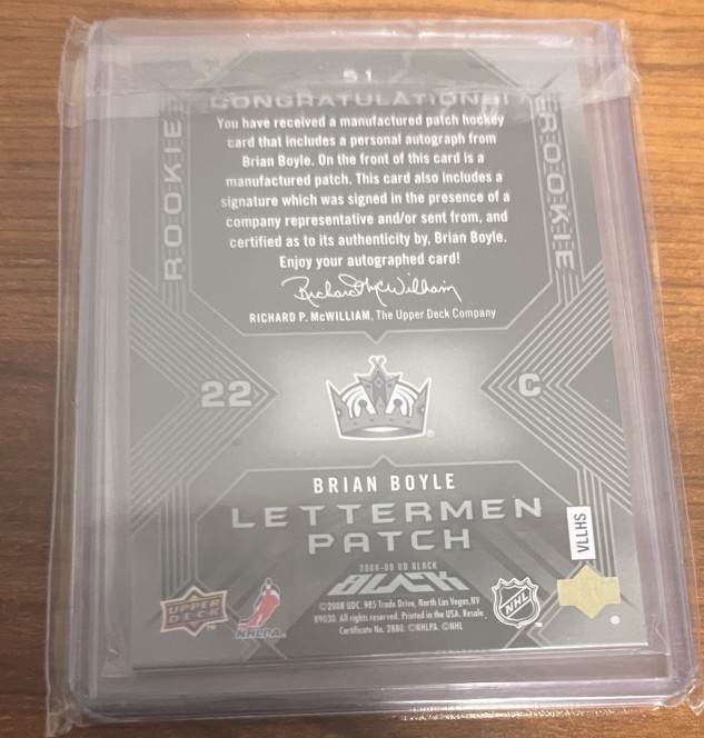 2008-09 Upper Deck UD Black Rookie Lettermen /399 Brian Boyle #51 AUTO Los Angele Kings Letter "E"