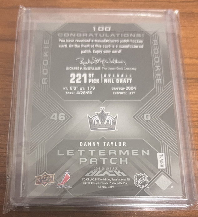 2008-09 Upper Deck UD Black Rookie Lettermen /399 Danny Taylor #100 Los Angele Kings Letter "T"