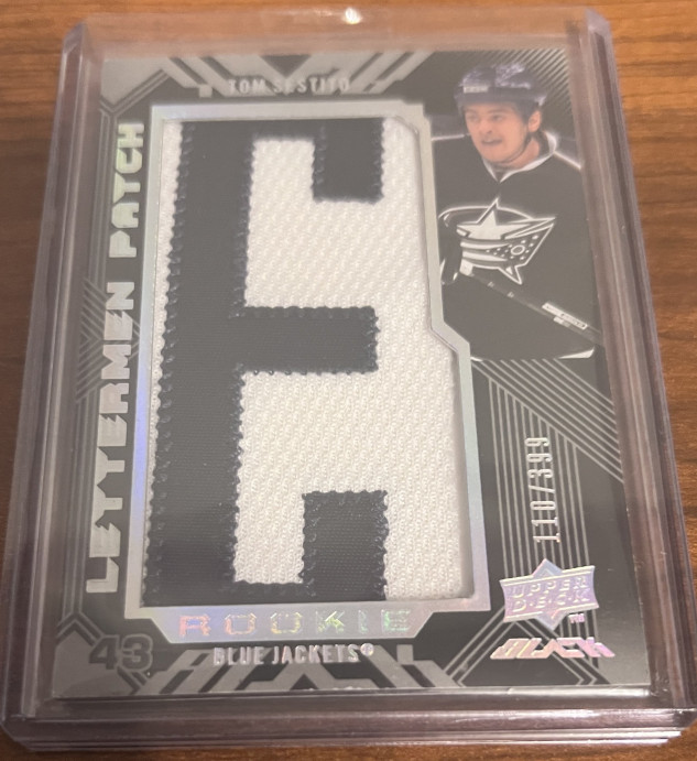 2008-09 Upper Deck UD Black Rookie Lettermen /399 Tom Sestito #91 Columbus Blue Jackets Letter "E". While I will consider trades, I am more interested in selling. PLEASE look at my profile because what I will accept in trade is very specific. If you offer me in trade something that is not listed in my profile, I will not reply. Thank you for looking.