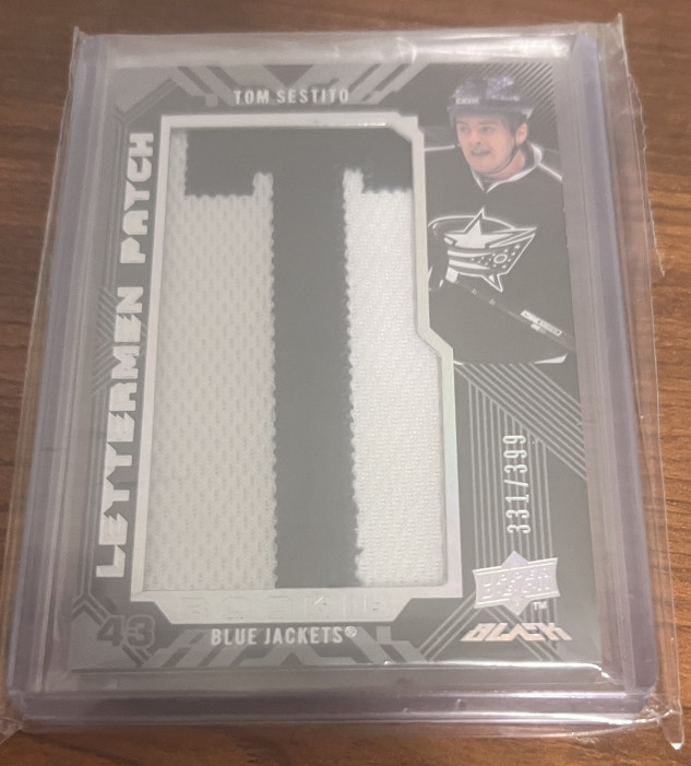 2008-09 Upper Deck UD Black Rookie Lettermen /399 Tom Sestito #91 Columbus Blue Jackets Letter "T". While I will consider trades, I am more interested in selling. PLEASE look at my profile because what I will accept in trade is very specific. If you offer me in trade something that is not listed in my profile, I will not reply. Thank you for looking.