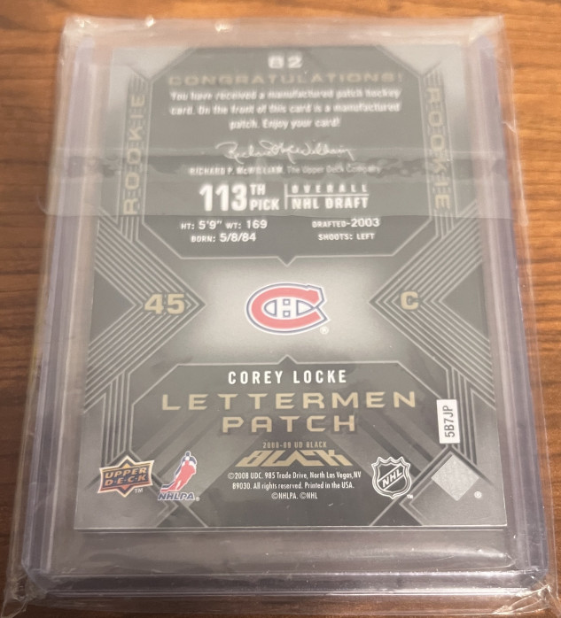 2008-09 Upper Deck UD Black Rookie Lettermen GOLD /15 Corey Locke #82 Montreal Canadiens Letter "I"