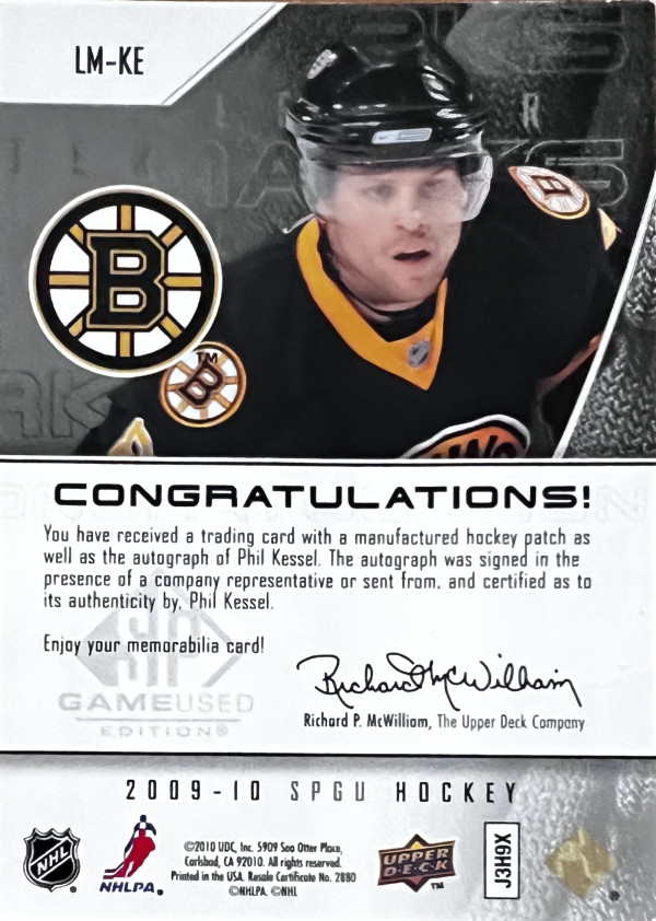 2009-10 SP Game Used Letter Marks /50, Phil Kessel