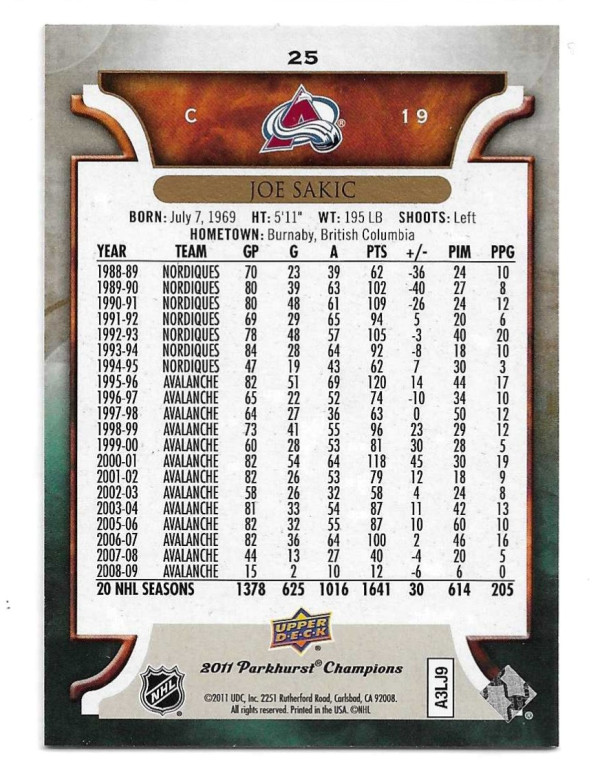 2011-12 PARKHURST CHAMPIONS #25 JOE SAKIC