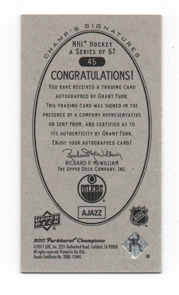 2011-12 Upper Deck Parkhurst Champions Champ's Minis Signatures #45 Grant Fuhr