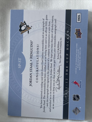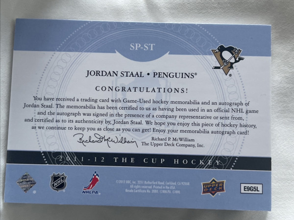 2011-12 Upper Deck The Cup Hockey Signature Patches /75 Jordan Staal #SP-ST