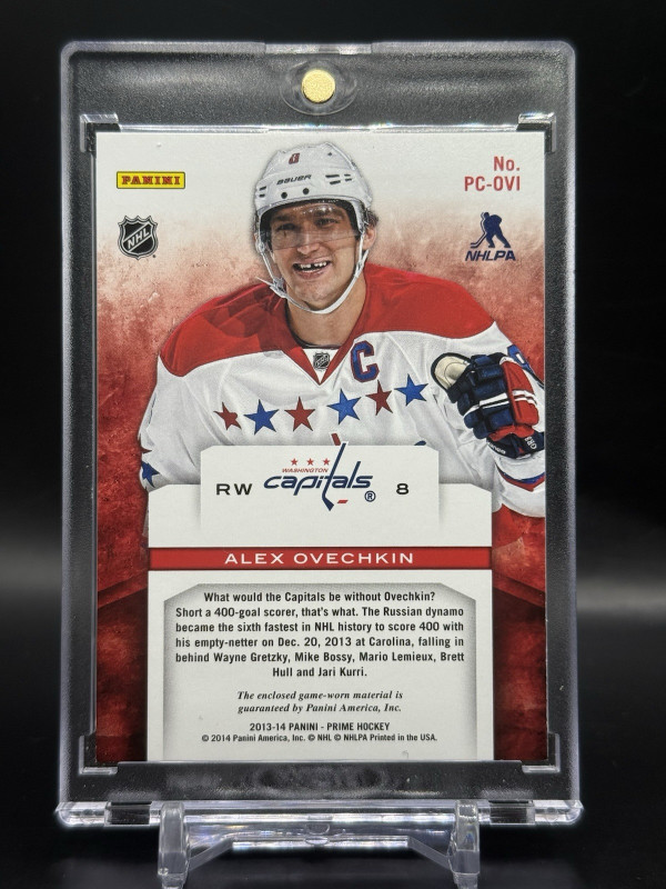 You are purchasing a 2013-14 Panini Prime Alex Ovechkin Patch. You will receive the exact item in the photographs. Thank you for looking.