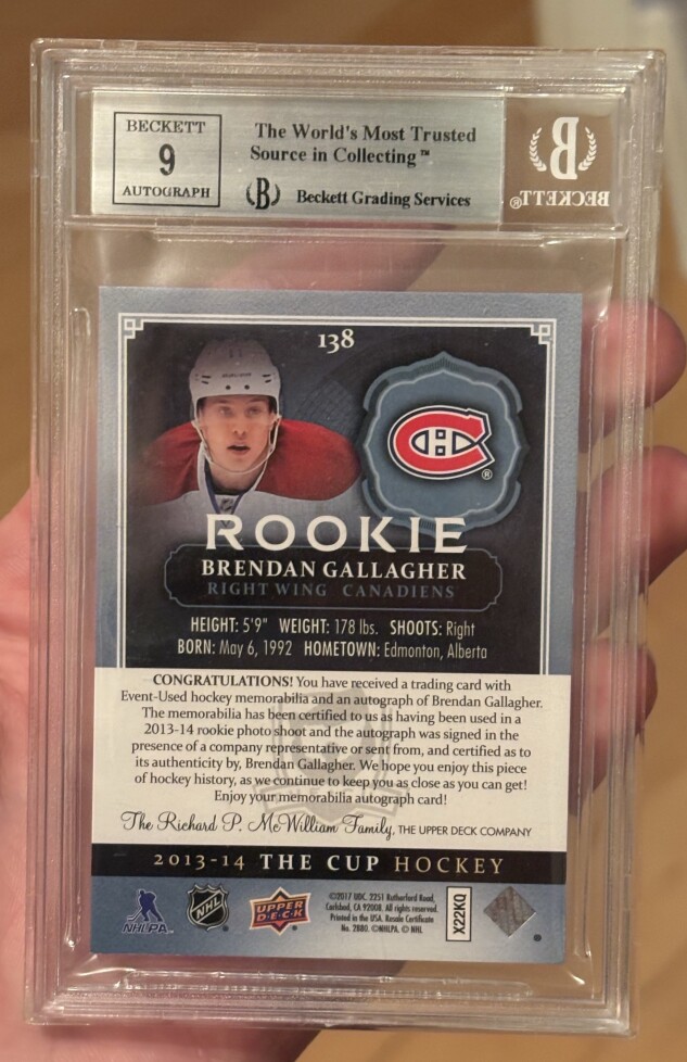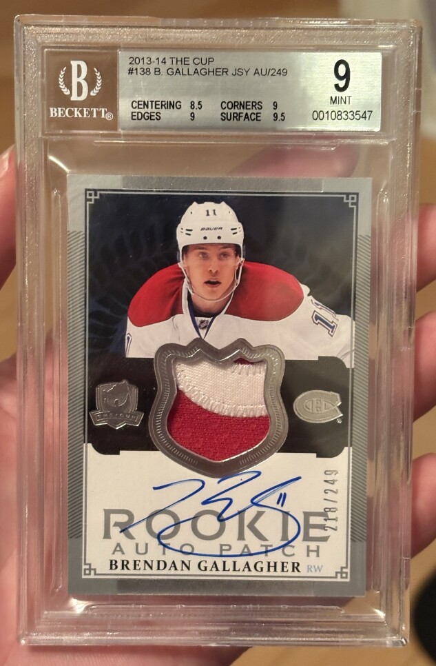 2013-14 Upper Deck The Cup Rookie Patch Auto 218/249 #138 Brendan Gallagher BGS 9