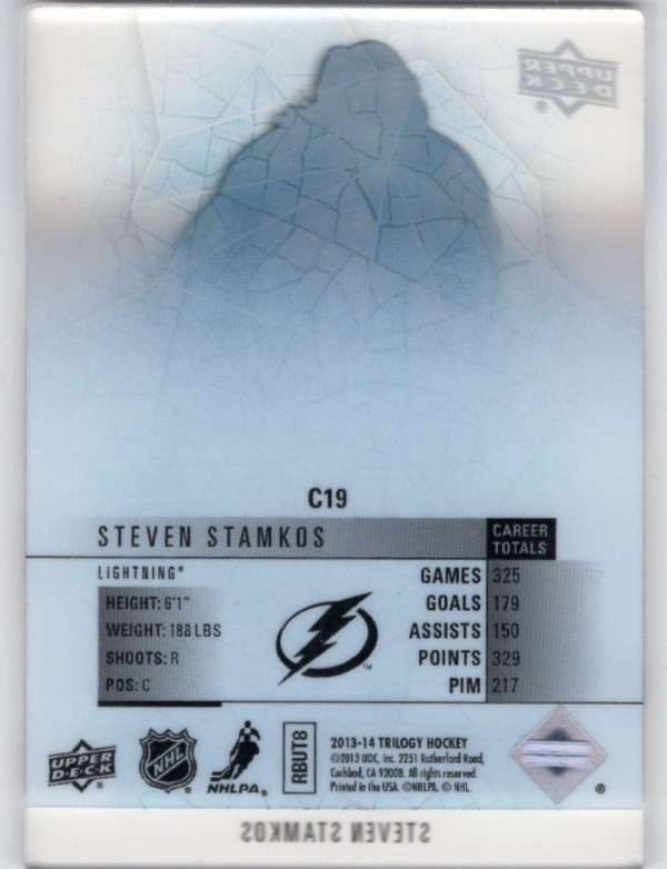 You are purchasing a 2013-14 Upper Deck Trilogy Crystal Steven Stamkos #C19. You will receive the exact item in the photographs. Thank you for looking.