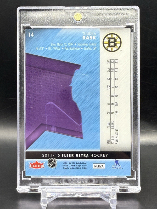 You are purchasing a 2014-15 Fleer Ultra Tuukka Rask #14. You will receive the exact item in the photographs. Thank you for looking.