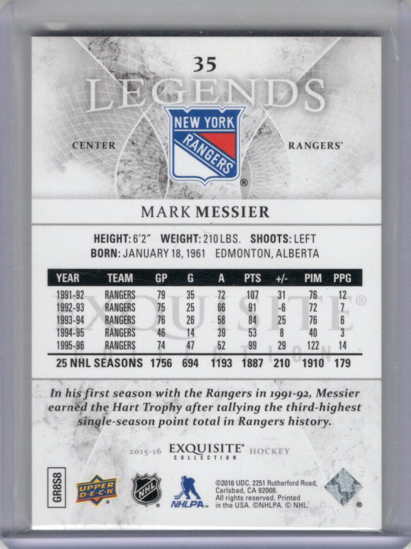 2015-16 Upper Deck Exquisite Collection Legends Mark Messier #35 300/499