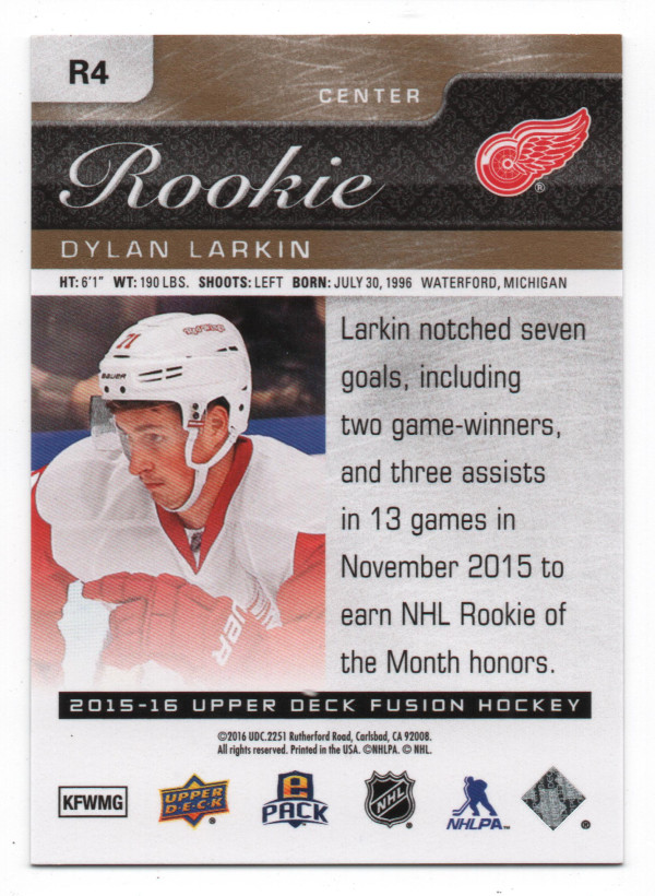 2015-16 Upper Deck Fusion Rookie Achievements Gold #R4 Dylan Larkin RC