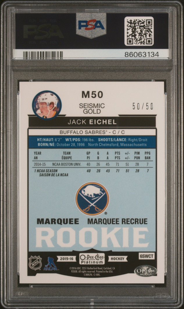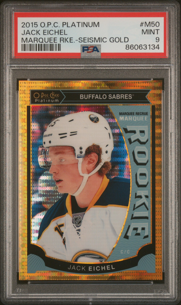 2015 O-Pee-Chee Platinum Marquee Rookies Jack Eichel Marquee Rke.-Seismic Gold 50/50 bookend
