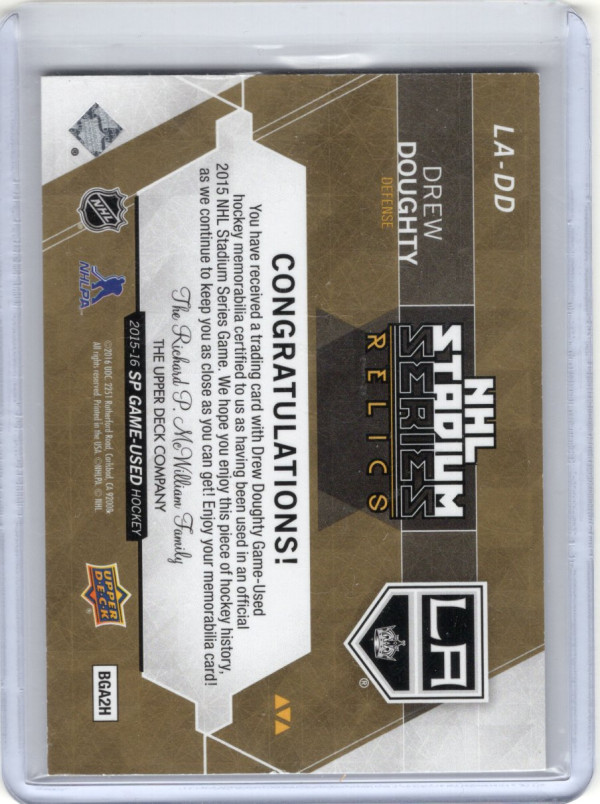 2015 Upper Deck SP Game Used NHL Stadium Series Relics Drew Doughty #LA-DD 23/49