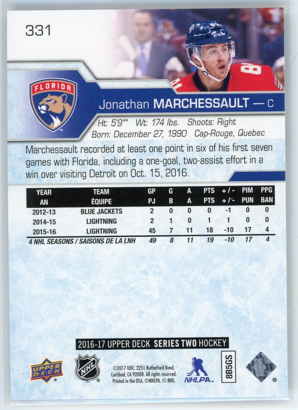 2016-17 Upper Deck #331 Jonathan Marchessault Exclusives 88/100
