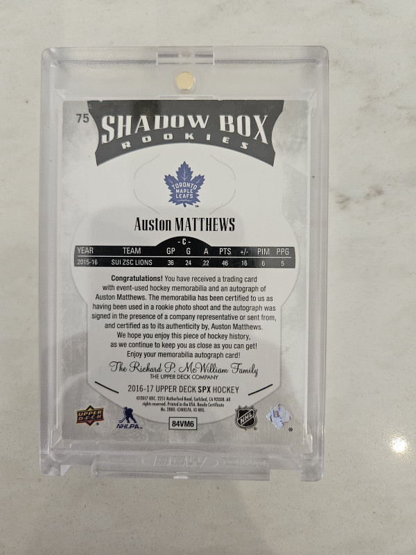 2016 Auston Matthews Shadow Box Rookie Auto 41/99