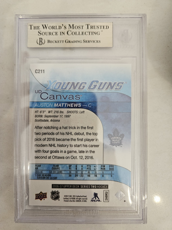2016 Auston Matthews Young Guns Canvas BGS 10
