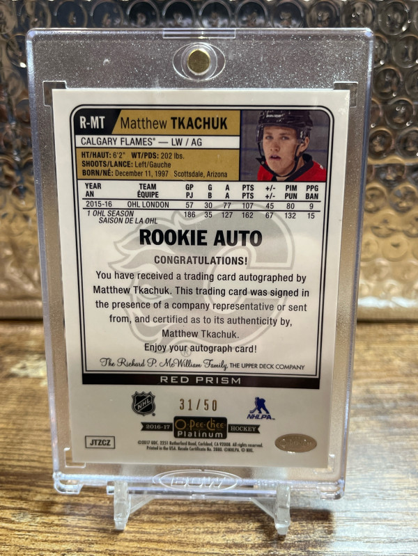 2016 Matthew Tkachuk OPC Rookie Red Prism Auto /50