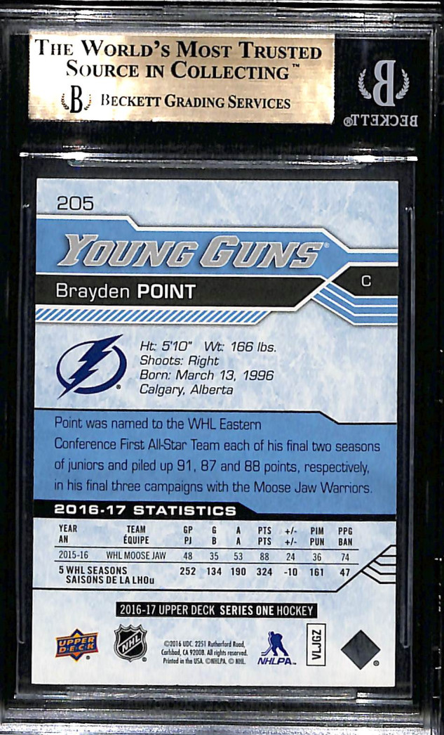 You are purchasing a 2016 Upper Deck Brayden Point YG RC #205 BGS 9.5. You will receive the exact card in the photographs. Thank you for looking.