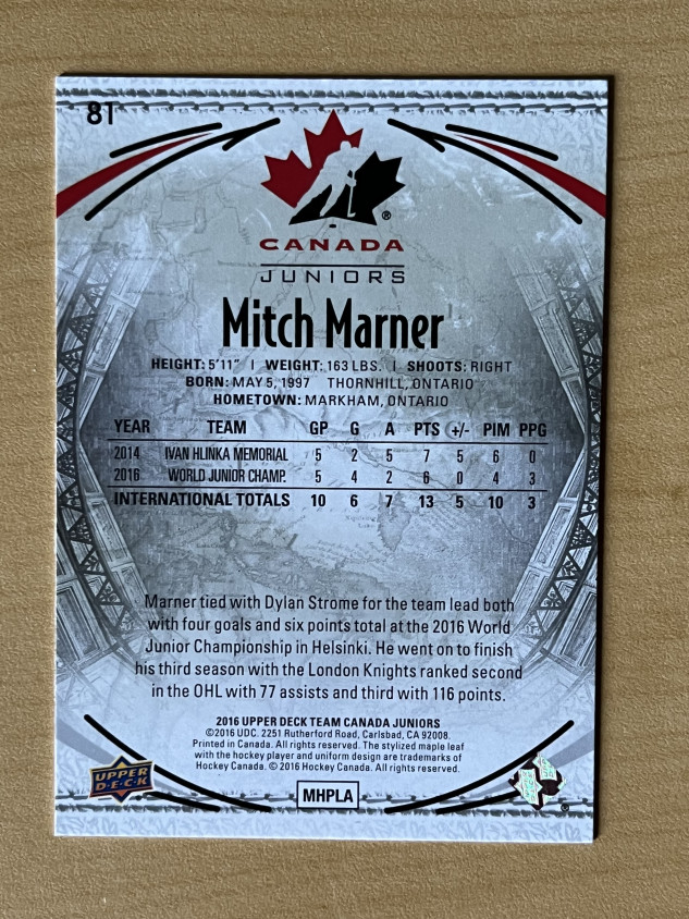 2016 Upper Deck Team Canada Juniors Gold #81 Mitch Marner —VVCARDS—