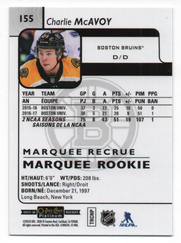 2017-18 O-Pee-Chee Platinum #155 Charlie McAvoy