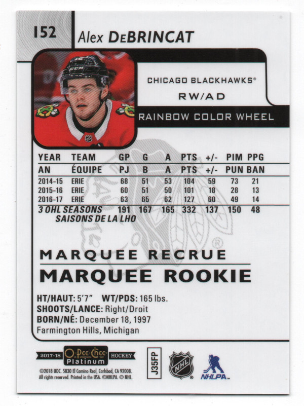 2017-18 O-Pee Chee Platinum ePack Rainbow Color Wheel Parallel #152 Alex DeBrincat RC