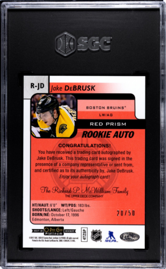 2017-18 O-Pee-Chee Platinum Jake Debrusk SGC 10