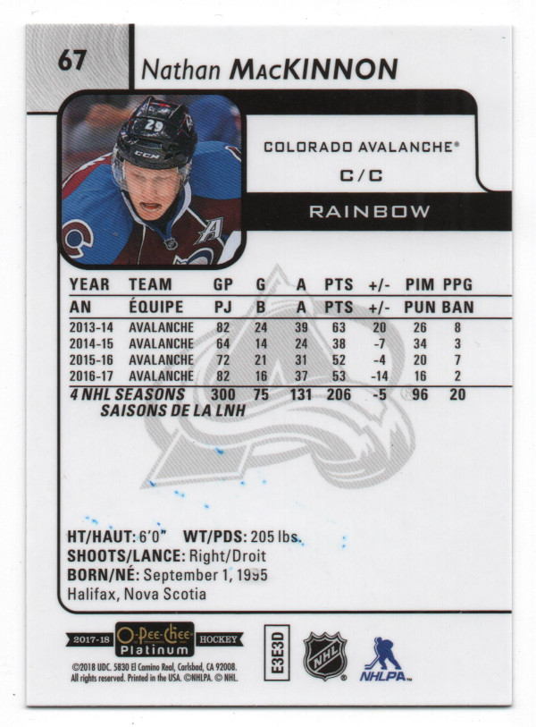 2017-18 O-Pee-Chee Platinum Rainbow Parallel #67 Nathan MacKinnon
