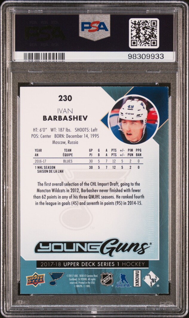 You are purchasing a 2017-18 Upper Deck Ivan Barbashev #230 Young Guns Rookie PSA 8. You will receive the exact item in the photographs. Thank you for looking.