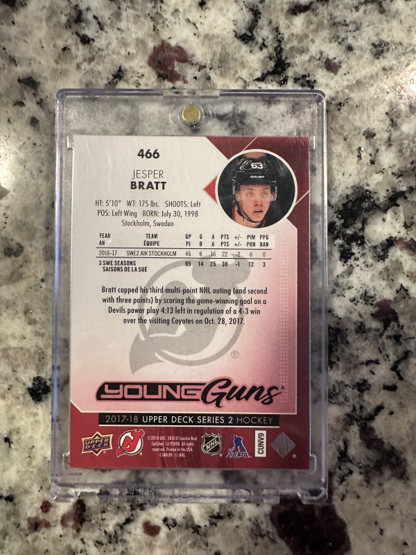 2017-18 Upper Deck Jesper Bratt Young Guns Exclusives /100