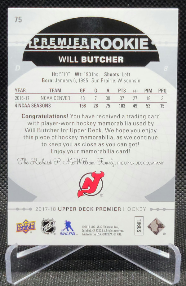 2017-18 Upper Deck Premier Jerseys #75 Will Butcher