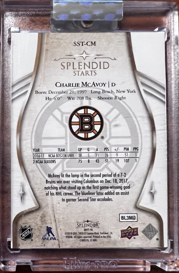 2017-18 Upper Deck Splendor Splendid Starts, Charlie McAvoy