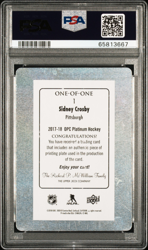 2017 O-Pee-Chee Platinum Yellow Printing Plate Sidney Crosby 1/1 #1 PSA AUTH