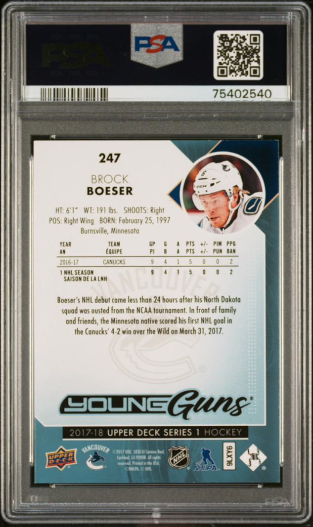 You are purchasing a 2017 Upper Deck Brock Boeser #247 PSA 9. You will receive the exact card in the photographs. Thank you for looking.