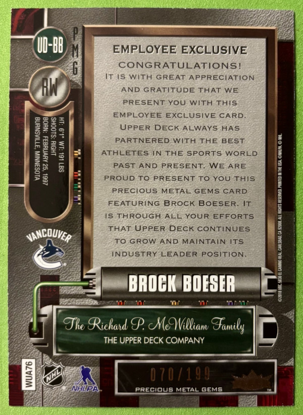 2017 Upper Deck Employee Exclusive PMG Brock Boeser /199