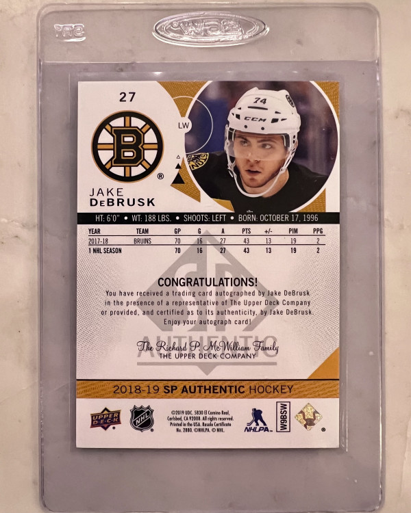2018-19 SP Authentic Jake Debrusk Limited Auto