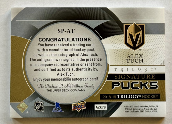 2018-19 Trilogy Signature Pucks Alex Tuch