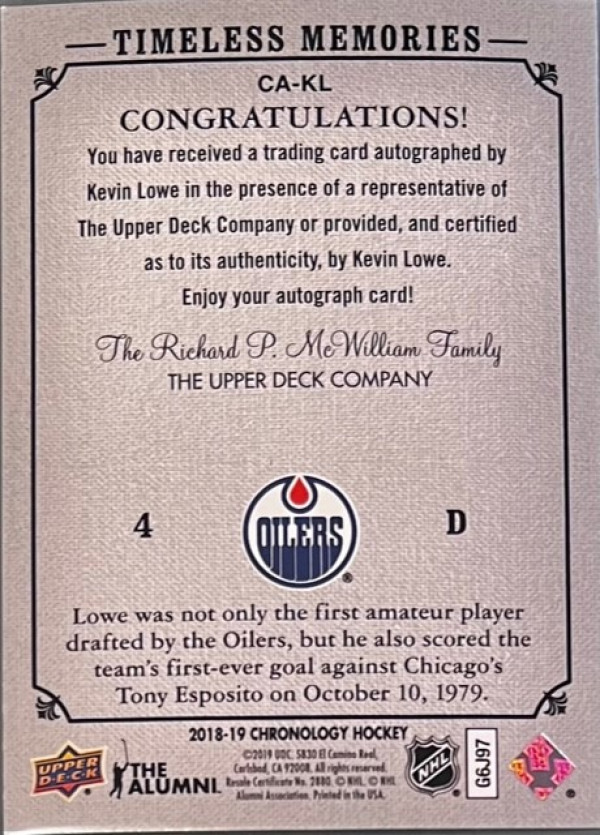 2018-19 UD Chronology Timeless Memories AU, Kevin Lowe