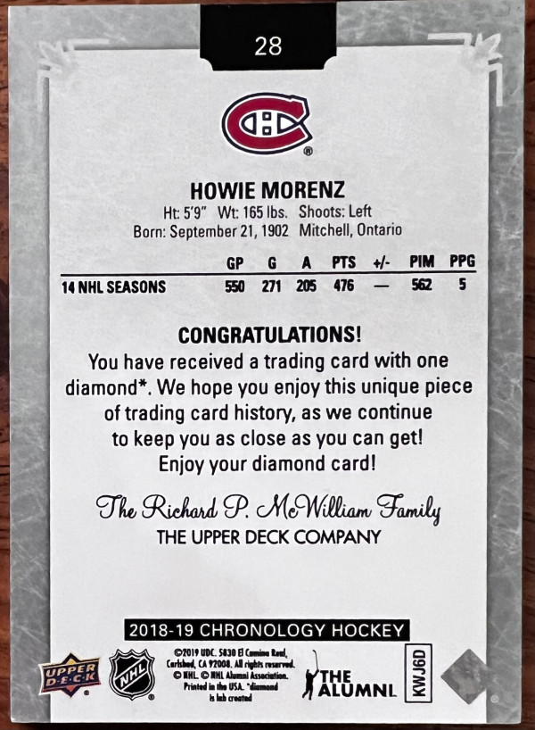 2018-19 Upper Deck Chronology Diamond Relics /36, Howie Morentz