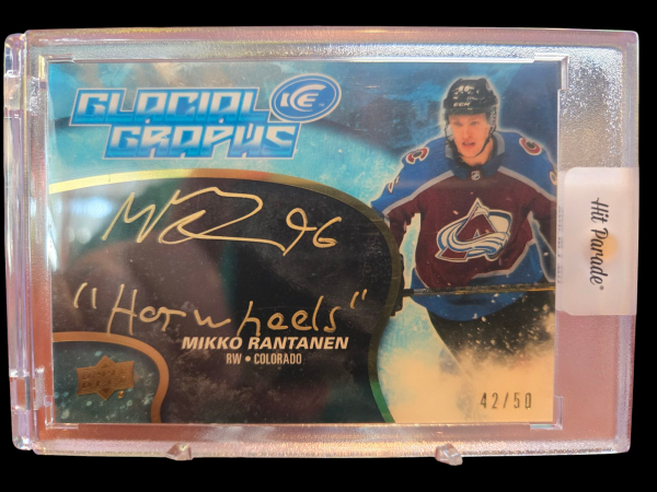 2018-19 Upper Deck Ice Glacial Graphs Black GGMR Mikko Rantanen 42/50 Inscribed "Hot Wheels"