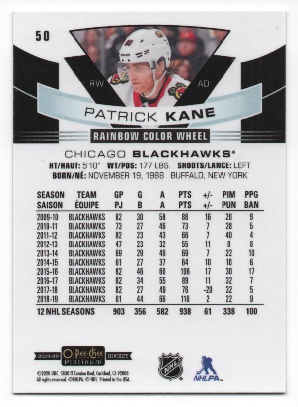 2019-20 O-Pee-Chee Platinum ePack Rainbow Color Wheel Parallel #50 Patrick Kane