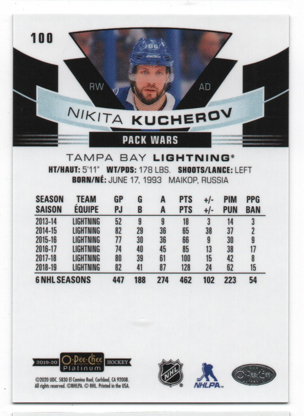 2019-20 O-Pee-Chee Platinum Pond Hockey ePack Green Parallel #100 Nikita Kucherov