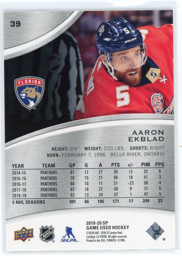 2019-20 SP Game Used #39 Aaron Ekblad Rainbow /275