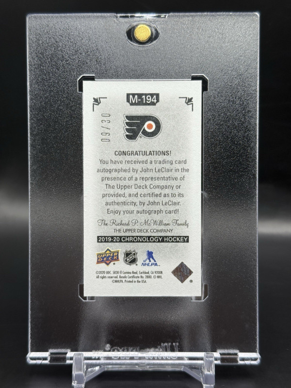 You are purchasing a 2019-20 Upper Deck Chronology John LeClair #M-194 Autographs Parallel/Variety Insert. You will receive the exact item in the photographs. Thank you for looking.