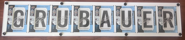 Philipp Grubauer full Chronology Letterman nameplate in a white frame. While I will accept trades, I am more interested in selling, please look at my profile because what I will accept in trade is very specific. Thank you for looking, please message me with questions.