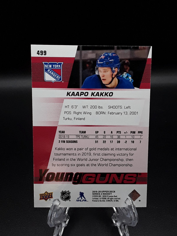 2019-20 Upper Deck Kaapo Kakko Young Guns RC Rookie UD Exclusives 100/100 SP Rangers