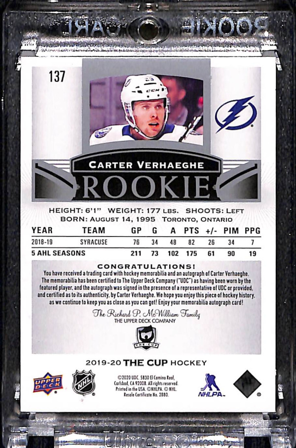 You are purchasing a 2019-20 Upper Deck The Cup Carter Verhaeghe #137 024/249. You will receive the exact card in the photographs. Thank you for looking.