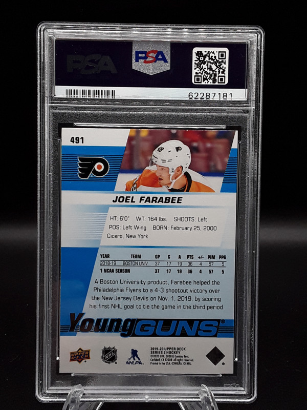 2019-20 Upper Deck Young Guns #491 Joel Farabee Rookie RC PSA 10 Flyers