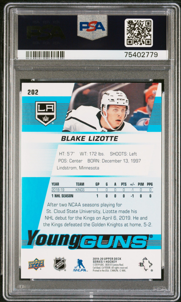 You are purchasing a 2019 Upper Deck Blake Lizotte #202 PSA 9. You will receive the exact card in the photographs. Thank you for looking.