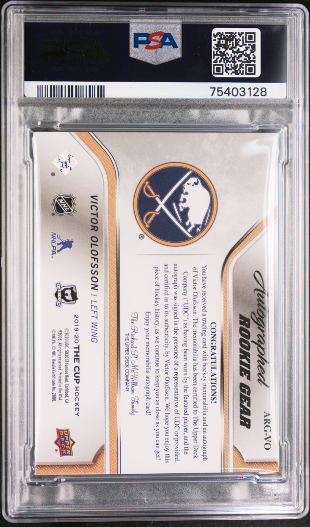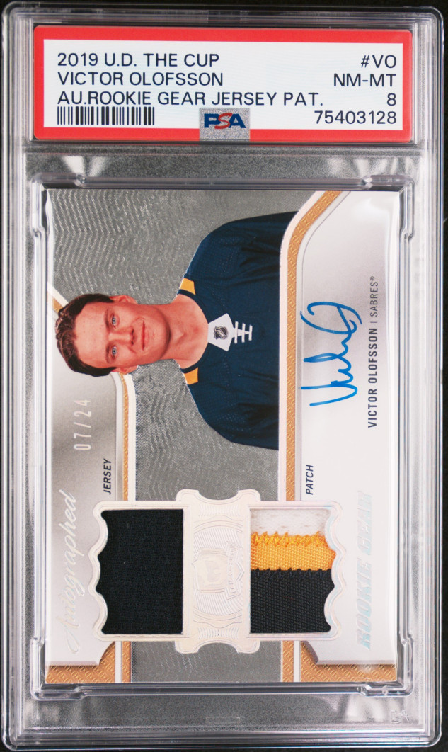 You are purchasing a 2019 Upper Deck The Cup Autographed Rookie Gear Jersey Patch Victor Olofsson #VO Au.Rookie Gear Jersey Pat. PSA 8. You will receive the exact card in the photographs. Thank you for looking. Listed with Mascot.
